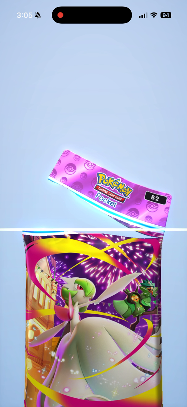 I wanted to recreate this Pokémon card pack opening animation for Ludus. Studying vocab should feel just as satisfying as ripping open a booster pack. But building an interaction like this is actually really complicated -- Pokémon uses Unity, a full 3D game engine, and I didn't have time to learn new software.