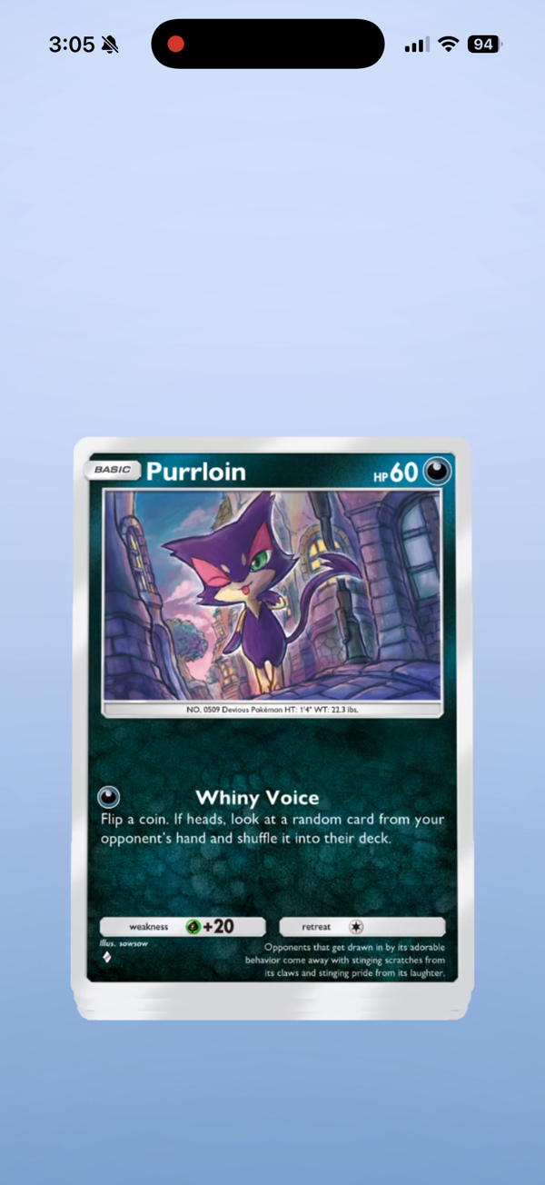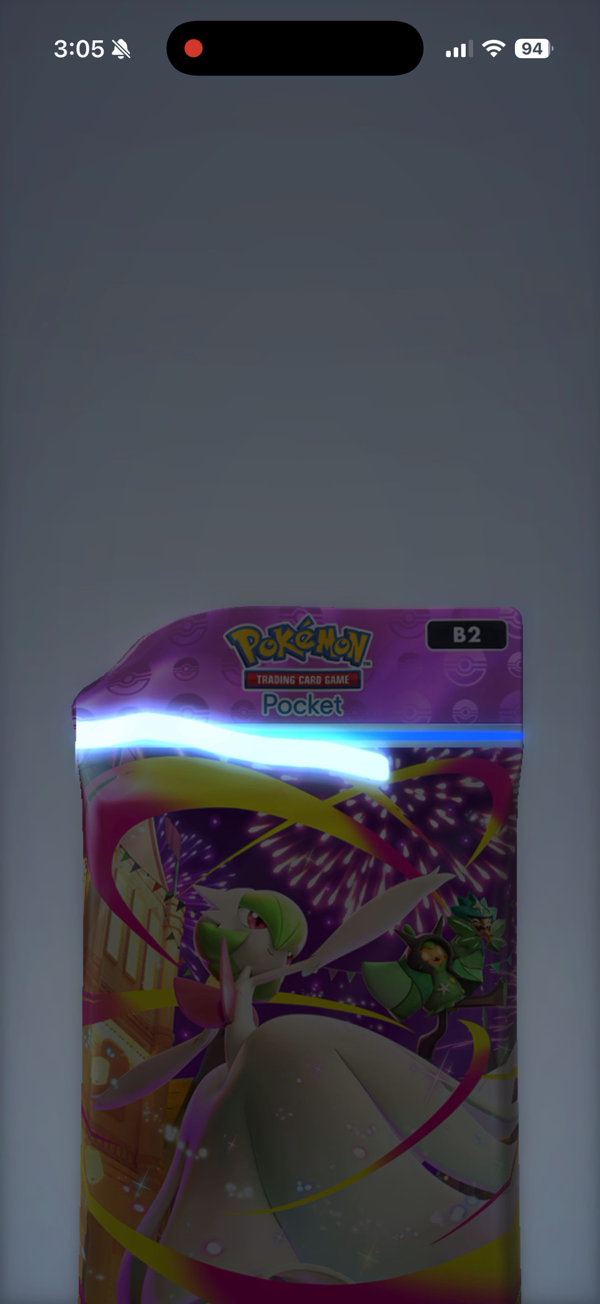 I wanted to recreate this Pokémon card pack opening animation for Ludus. Studying vocab should feel just as satisfying as ripping open a booster pack. But building an interaction like this is actually really complicated -- Pokémon uses Unity, a full 3D game engine, and I didn't have time to learn new software.